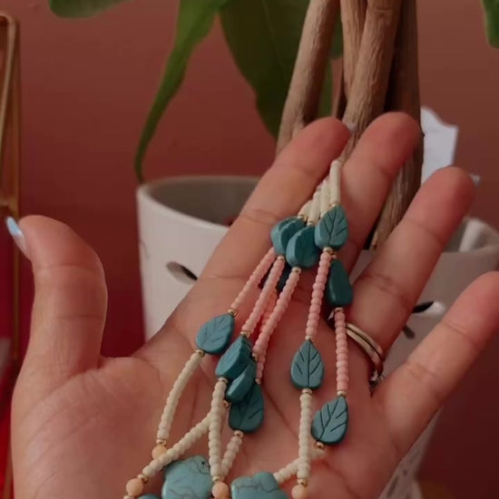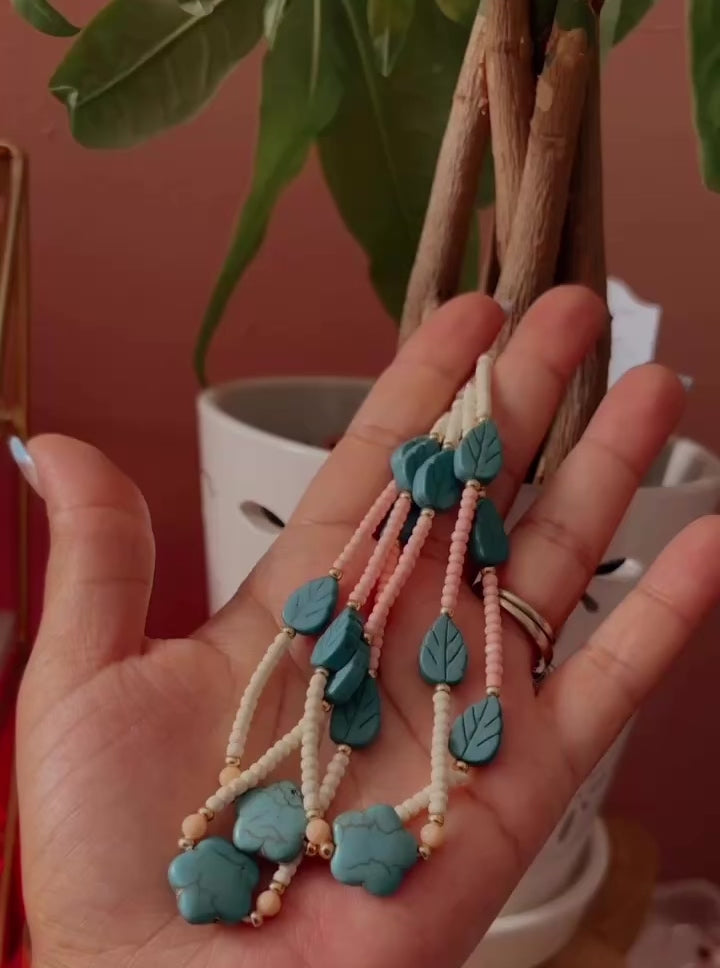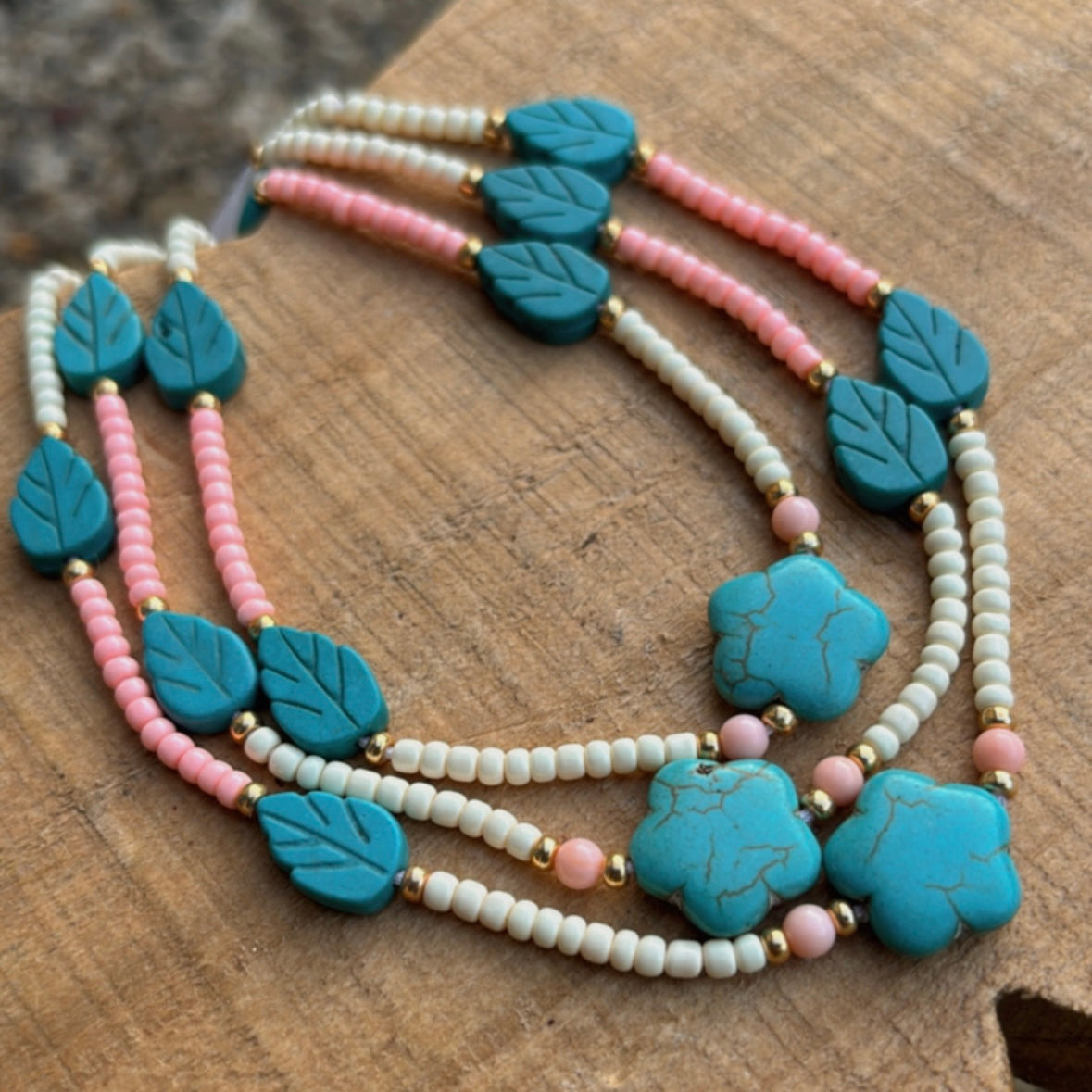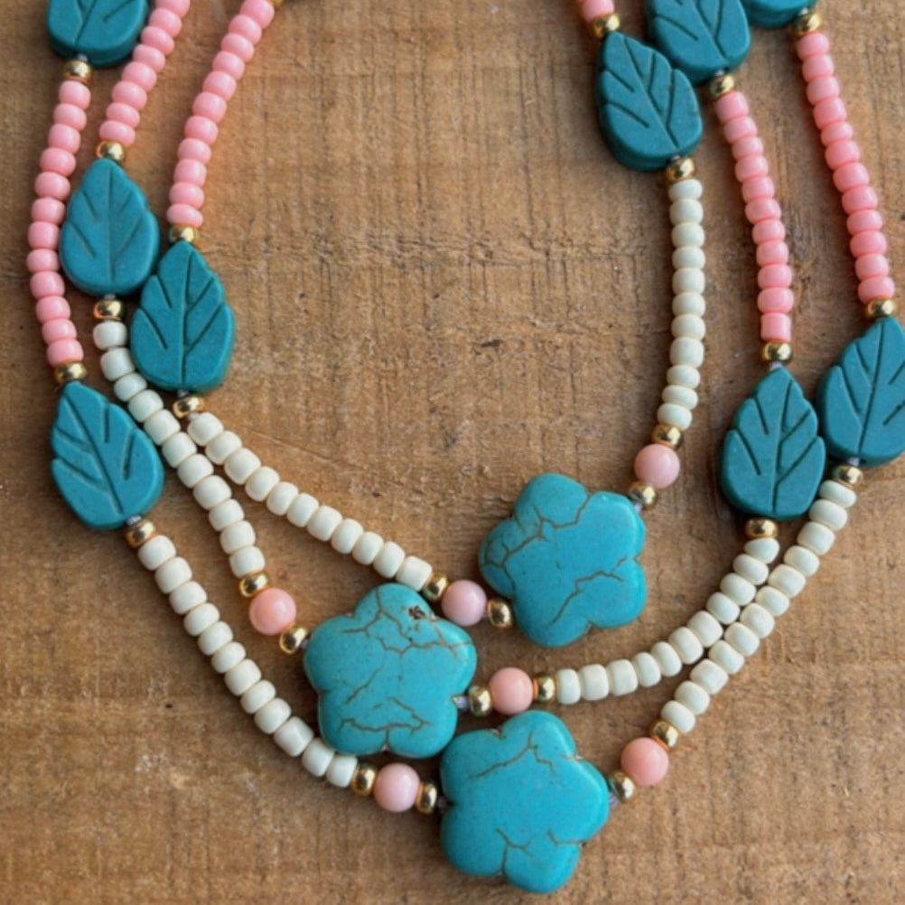 Handmade anklet created with teal, tan, pink and gold beads of the best quality.